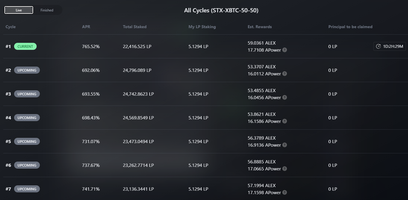 1사이클에 대략 3.6일(525블럭) 입니다. 풀 유동성 공급이 계속 되면 이자율은 떨어질 수 있습니다.